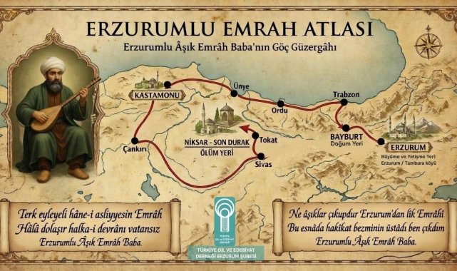 Türkiye Dil ve Edebiyat Derneği Erzurum Şubesi'nden Erzurum'a bir kültürel hizmet daha geldi,üç önemli atlas hazırlandı.28 Mart'ta dördüncü olağan genel kurulunu yaparak Murat Ertaş başkanlığında yeni yönetim kurulu oluşturan ve ilk olarak şehrin milli mücadelesinde, tarihinde ve hafızasında olup unutulmuş Erzurum Marşı'nı yeniden seslendirip kaydını milyonlarla paylaşan TDED Erzurum şimdi de şehrin sosyo-kültürel tarihini, Erzurum'un hinterlandını ve şehir kimliğinin etkileşim coğrafyasını gösteren üç önemli atlas hazırladı.Titiz bir çalışma ile yapıldıKonuyla ilgili bir açıklama yapan TDED Erzurum Şube Başkanı Murat Ertaş bir Erzurum türküsü olan ve geçtiğimiz aylarda Cumhurbaşkanımız Sayın Recep Tayyip Erdoğan'ın grup toplantısında Türk milletinin gönül coğrafyasını anlatırken 'bir Erzurum türküsü' deyip örnek verdiği "Nasıl Methedeyim Sevdiğim Seni" türküsünde geçen illerin haritasını, tüm Türk dünyasında bilinen ve hikâyenin tüm varyantlarında en önemli şehir olan Kerem ile Aslı hikâyesinde Aslı'nın ardından Âşık Kerem'in yol aldığı güzergâhı gösteren haritayı ve Erzurumlu Emrah'ın Anadolu'da dolaştığı yerleri gösteren haritayı kıymetli bir ekiple titizlikle şekillendirdiklerini ve Erzurumluların istifadesine sunacaklarını söyledi.Coğrafya için önemli üç eserTDED Erzurum Şube Başkanı Murat Ertaş sözlerine şöyle devam etti: "Geçen hafta Erzurum Marşı'nı tüm Erzurumlulara ve yeni nesle hatırlatan video çalışmamız olmuştu. Erzurum Marşı sosyal paylaşım sayfalarında, şehir portallarında toplamda bir milyondan fazla izlendi. Şimdi de şehrimize üç kültür atlası hazırladık. Yolların ve suların başkenti, kavşak şehir Erzurum bulunduğu jeopolitik konum itibariyle tarih boyunca Türkistan'dan Hicaz'a ve Maşrık dediğimiz Kuzeybatı Afrika'ya kadar gönül coğrafyamızla irtibatlı şehir olmuştur. Bunu en iyi gösteren ise halk kültürü öğeleridir. Türkülerimiz, aşıklarımız, onların çığırdığı türküler Erzurum'un dil, kültür ve etkileşim coğrafyasını gösteren önemli vesikalardır. Bu şuurla üç atlas hazırladık. Âşık Kerem Atlası, Erzurumlu Emrah Atlası, Nasıl Methedeyim Sevdiğim Seni Türküsünün Atlası… Biz türkülerimizi bir antropolog titizliğiyle inceliyoruz. Şehrimizin ruh ve gönül dünyasını oluşturan türkülerin görsel çalışmayla somutlaştırarak yeni neslin hafızasında kalıcı iz bırakmasını ve tüm Erzurumluların yaşadıkları şehrin büyüklüğünü ve önemini daha iyi fark etmelerine yardımcı olmasını amaçladık. Emek veren arkadaşlarıma, TDED Erzurum ailesine teşekkür ediyorum. Hayırlı olsun. TDED Erzurum olarak yeni yönetimimizle şubemizin 10. yılı çalışmaları devam edecek ve şehrimize yeni sürprizlerimiz olacak inşallah."