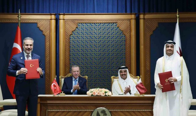 Cumhurbaşkanı Recep Tayyip Erdoğan ile Katar Emiri Şeyh Tamim bin Hamad Al Thani huzurunda, çeşitli alanlarda anlaşmalar ile Yüksek Stratejik Komite 11. Toplantısı Ortak Bildirisi imzalandı.Cumhurbaşkanı Recep Tayyip Erdoğan, Kuveyt temaslarını tamamlayarak dün akşam saatlerinde Katar'a geldi. Cumhurbaşkanı Erdoğan, Katar'ın başkenti Doha'daki Emirlik Divanı'nda Katar Emiri Şeyh Tamim bin Hamad Al Thani tarafından resmi törenle karşılandı. Emirlik Divanı'ndaki baş başa ve heyetler arası görüşmelerin ardından Cumhurbaşkanı Erdoğan ve Katar Emiri Şeyh Al Thani, Türkiye-Katar Yüksek Stratejik Komite 11. Toplantısı'na başkanlık etti. Toplantının ardından Erdoğan ve Al Thani'nin huzurunda, iki ülke arasındaki anlaşmaların imza törenine geçildi.Türkiye Cumhuriyeti ve Katar Devleti Arasında Yüksek Stratejik Komite 11'inci Toplantısına İlişkin Ortak Bildiri, Dışişleri Bakanı Hakan Fidan ve Katar Başbakanı ve Dışişleri Bakanı Şeyh Muhammed bin Abdurrahman Al Sani tarafından imzalandı. Cumhurbaşkanlığı Strateji ve Bütçe Başkanlığı ile Katar Devleti Hükümeti Arasında Stratejik Kalkınma Planlamasının Çeşitli Alanlarda İşbirliğine ve Tecrübe Paylaşımına İlişkin Mutabakat Zaptı, Hazine ve Maliye Bakanı Mehmet Şimşek ve Ticaret Bakanı Ömer Bolat ile Katar Ulusal Planlama Konseyi Genel Sekreteri Abdulaziz bin Nasır Al Halife tarafından imzalandı.Ticaret Bakanlığı ile Katar Ticaret ve Sanayi Bakanlığı Arasındaki Ortak Bakanlar Açıklaması'na, Ticaret Bakanı Ömer Bolat ile Katar Ticaret ve Sanayi Bakanı Şeyh Faysal bin Sani Al Sani tarafından imza attı.Savunma Sanayi Alanında İşbirliğine İlişkin Mutabakat Zaptı'nı, Savunma Sanayi Başkanı Haluk Görgün ile Başbakan Yardımcısı ve Savunma Bakanı Şeyh Saud bin Abdurrahman bin Hasan bin Ali Al Thani imzaladı.