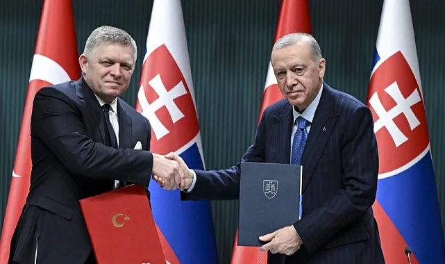 Türkiye Cumhuriyeti ile Slovakya arasında stratejik ortaklık tesis edilmesine ilişkin ortak bildiri ile 3 anlaşma imzalandı.ANKARA (İGFA) - Türkiye ile Slovakya arasında stratejik ortaklık tesisine ilişkin bildiri ile 3 anlaşma imzalandıCumhurbaşkanı Recep Tayyip Erdoğan ile Slovakya Başbakanı Robert Fico, Cumhurbaşkanlığı Külliyesi'nde baş başa ve heyetler arası görüşmelerin ardından iki ülke arasındaki anlaşmaların imza törenine geçti.Türkiye Cumhuriyeti ile Slovakya arasında stratejik ortaklık tesis edilmesine ilişkin ortak bildiri, Cumhurbaşkanı Erdoğan ile Slovakya Başbakanı Fico tarafından imzalandı.Erdoğan ve Fico huzurunda imzalanan 3 anlaşma şöyle:- "Türkiye Cumhuriyeti Cumhurbaşkanlığı İletişim Başkanlığı ile Slovak Cumhuriyeti Hükûmet Ofisi Arasında Basın ve İletişim Alanında Mutabakat Zaptı"- "Türkiye Cumhuriyeti Kültür ve Turizm Bakanlığı ile Slovak Cumhuriyeti Kültür Bakanlığı Arasında 2025-2029 Yıllarına İlişkin Kültür Alanında İşbirliği Mutabakat Zaptı"- "Türkiye Cumhuriyeti Hükûmeti ile Slovak Cumhuriyeti Hükûmeti Arasında Askerî Çerçeve Anlaşması"