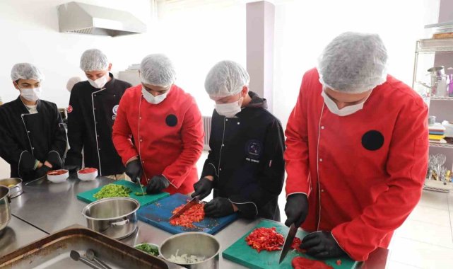 Ağrı'nın Eleşkirt ilçesindeki Mesleki ve Teknik Anadolu Lisesi Yiyecek ve İçecek Hizmetleri Bölümü, hem öğrencilere uygulamalı eğitim imkânı sunuyor hem de "Sıfır Atık Projesi" kapsamında Türkiye'nin geri dönüşüm temalı ilk uygulama restoranını işletiyor.Eleşkirt'teki Mesleki ve Teknik Anadolu Lisesi'nde 2021 yılında eğitim faaliyetlerine başlayan Yiyecek ve İçecek Hizmetleri Bölümü, kısa sürede üretim ve eğitim alanında önemli başarılar elde etti. Okulun döner sermaye işletmesi kapsamında taşımalı eğitim gören öğrencilere günlük bin kişilik sıcak yemek, ayrıca Endüstriyel Ekmek Üretim Tesisi'nde günlük 10 bin adet ekmek üretiliyor. Fırın atölyesinde öğrenciler, öğretmenlerinin gözetiminde günlük 10 bin ekmek üretimi gerçekleştiriyor. Aynı zamanda köy okullarına dağıtılmak üzere hazırlanan sıcak yemekler de öğrenciler tarafından pişiriliyor.Restoranda geri dönüştürülmüş malzemeler kullanıldı2023 yılında hizmete giren geri dönüşüm temalı uygulama restoranı, Cumhurbaşkanı Recep Tayyip Erdoğan'ın eşi Emine Erdoğan'ın himayelerinde yürütülen "Sıfır Atık Projesi" kapsamında tamamen geri dönüştürülmüş malzemelerle tasarlandı. 45 kişilik kapasiteye sahip uygulama restoranı, öğrencilere gerçek işletme deneyimi kazandırmanın yanı sıra Eleşkirt halkına da uygun fiyatlı öğle yemeği hizmeti sunuyor. Eleşkirt Mesleki ve Teknik Anadolu Lisesi, "üreten okul" anlayışıyla hem bölge ekonomisine katkı sağlıyor hem de geleceğin şeflerini yetiştiriyor."Sıfır Atık Projesi'yle hayata geçen ilk restoran"Ağrı İl Milli Eğitim Müdürü Hasan Kökrek, restoranın Türkiye'de örnek bir model olduğunu belirterek, "Restoranımız, sıfır atık kapsamında üretilmiş olan Türkiye'deki ilk uygulama restoranıdır. Buradaki tüm ürünler ve malzemeler, okulumuz atölyelerinde geri dönüştürülerek kazandırılmıştır. Öğrencilerimiz hem üretim hem servis aşamasında görev alarak gerçek bir işletme deneyimi kazanıyor" ifadelerini kullandı.Öğrencilerin üretim sürecine aktif katılım sağladığını da vurgulayan Kökrek, "Amacımız, öğrencilerimizin mezun olduklarında kendi işlerini kurabilecek veya sektörde kolayca istihdam edilebilecek donanıma sahip olmalarıdır" dedi."Hem öğreniyor hem kazanıyoruz"11. sınıf öğrencisi Esma Demirci, okulun sunduğu imkânlarla mesleki deneyim kazandıklarını söyleyerek, "Biz burada Eleşkirt'teki köy okullarına yemek üretiyor ve dağıtıyoruz. Aynı zamanda fırınımızda ekmek yapıyoruz. Uygulama restoranımızda öğretmenlerimizle birlikte yemek hazırlıyoruz; hem öğreniyoruz hem de tecrübe kazanıyoruz. İleride şef olmak istiyorum. Bu okul bana bu yolda büyük katkı sağlıyor" ifadelerini kullandı.