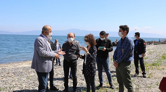 Mudanya Belediyesi Başkan Yardımcıları Nisa Kartaltepe Yılmaz ve Sevinç Şenşekerci'nin yanı sıra ilgili birimlerin müdürleri ve meclis üyeleriyle birlikte kıyı şeridinde incelemelerde bulunan Başkan Türkyılmaz, teknik incelemenin yanı sıra eksiklikleri tespit etti.
