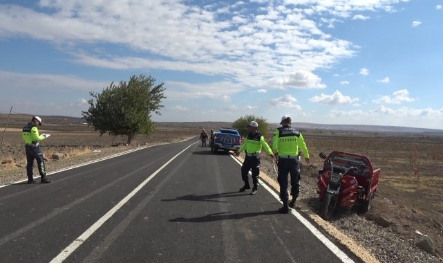 Kilis'in Polateli ilçesine bağlı Polatbey köyü civarında meydana gelen trafik kazasında üç tekerlekli elektrikli motosikletin devrilmesi sonucu karı koca ağır yaralandı.