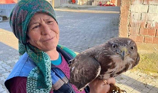 Uçamayan yaralı Şahin'e, köylüler sahip çıktı