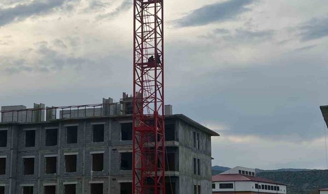 Ücretlerini alamadıklarını iddia eden işçiler kule vince çıktı