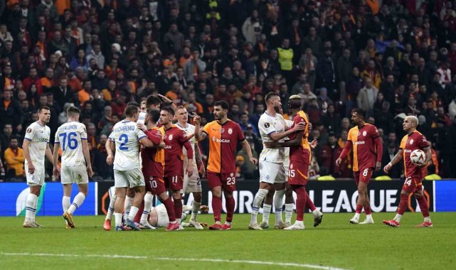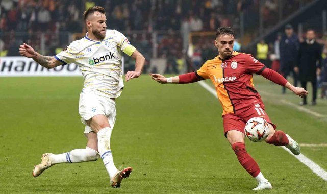 UEFA Avrupa Ligi 7. hafta mücadelesinde Galatasaray, konuk ettiği Ukrayna ekibi Dinamo Kiev ile 3-3 berabere kaldı.Maçtan dakikalar (İkinci yarı)49. dakikada sağ taraftan Mertens'in kullandığı kornerde Abdülkerim Baradakcı'nın kafa vuruşu sonrasında Barış Alper Yılmaz, arka direkte Tymchyk'ın müdahalesiyle yerde kaldı. Pozisyonun devamında mücadelenin hakemi Kristo Tohver, Barış Alper Yılmaz'a elle müdahale ettiğini işaret ederek, ikinci sarı karttan kırmızı kart gösterdi. Hakem Kristo Tohver, VAR'ın uyarısıyla pozisyonu izledi ve Barış Alper Yılmaz'a gösterdiği kartı iptal ederek penaltı noktasını gösterdi.53. dakikada kazanılan penaltı atışında topun başına geçen Osimhen, yaptığı vuruşta meşin yuvarlağı ağlara gönderdi. 3-163. dakikada sağ taraftan Barış Alper Yılmaz'ın yaptığı ortada penaltı noktası üzerinde iyi yükselen Osimhen'in kafa vuruşunda kaleci Neshcheret son anda meşin yuvarlağı kornere çeldi.68. dakikada sağ taraftan Pikhalonok'un kullandığı köşe vuruşunda Yarmolenko'nun arka direkte yaptığı vuruşta meşin yuvarlak filelere gitti. 3-281. dakikada sağ kanattan Buyalskyi'nin yaptığı ortada altıpas üzerinde iyi yükselen Yarmolenko, kafa vuruşunda meşin yuvarlağı kaleci Muslera'nın sağından ağlara gönderdi. 3-390+3. dakikada sağ kanattan Yusuf Demir'in yaptığı ortada kale önünde Osimhen'in kafa vuruşunda meşin yuvarlak kaleci Neshcheret'de kaldı.Hakemler: Kristo Tohver, Silver Koiv, Sander SagaGalatasaray: Muslera, Kaan Ayhan (Batshuayi dk. 86), Sanchez, Abdülkerim Bardakcı, Jabobs, Berkan Kutlu (Kerem Demirbay dk. 73), Torreira, Yunus Akgün, Mertens (Yusuf Demir dk. 90+1), Barış Alper Yılmaz (Jelert dk. 86), OsimhenYedekler: Batuhan Şen, Günay Güvenç, Nelsson, Berat Luş, Yalın Dilek, Efe Akman, Metehan BaltacıTeknik Direktör: Okan BurukDinamo Kiev: Neshcheret, Tymchyk, Bilovar, Mykhavko, Vivcharenko, Buyalskyi (Salenko dk. 87), Mykhailenko, Shaparenko (Pikhalonok dk. 46), Voloshyn (Yarmolenko dk. 46), Kabaiev (Guerrero dk. 74), Vanat (Ponomarenko dk. 90+4)Yedeler: Bushckan, Morgun, Diachuk, Rubchynskyi, Karavaiev, Dubinchak, BraharuTeknik Direktör: Oleksandr ShovkovskyiGoller: Sanchez (dk. 6), Abdülkerim Bardakcı (dk. 22), Osimhen (dk. 53 pen.) (Galatasaray), Vanat (dk. 45), Yarmolenko (dk. 68 ve 81) (Dinamo Kiev)Sarı kartlar: Barış Alper Yılmaz, Jaboks, Sanchez, Osimhen, Okan Buruk (Galatasaray), Shaparenko, Tymchyk, Pikhalonok, Mykhailenko, Vivcharenko (Dinamo Kiev)