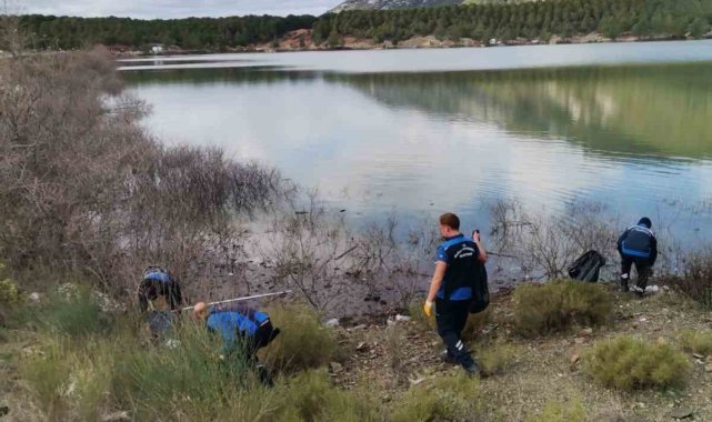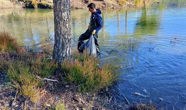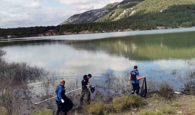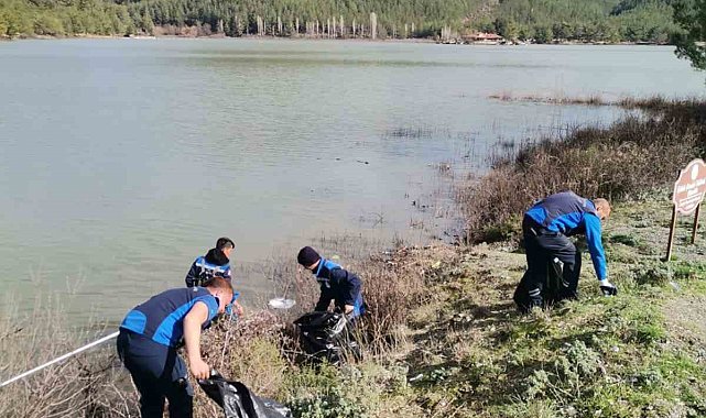 Yaz aylarında suların çekildiği, kış aylarında ise yoğun yağışlarla yeniden yükselen Ula Göletinde, suyla birlikte doğaya zarar verebilecek atıkların birikmesini önlemek amacıyla temizlik yapıldı.