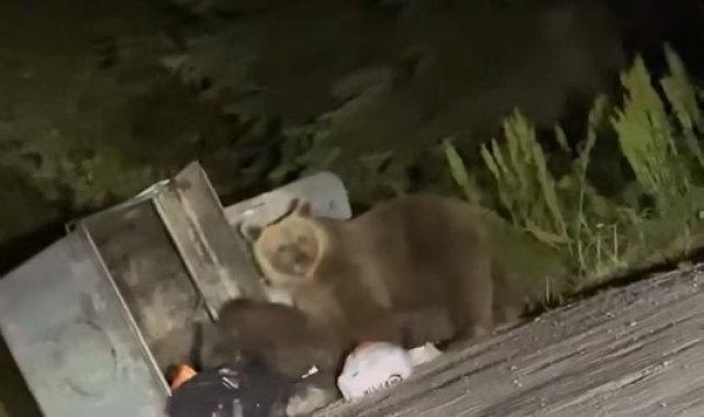 Türkiye'nin önemli turizm merkezlerinden biri olan Uludağ'da aç kalan ayı ailesi, çöp konteynerlerini karıştırarak yiyecek aradı.