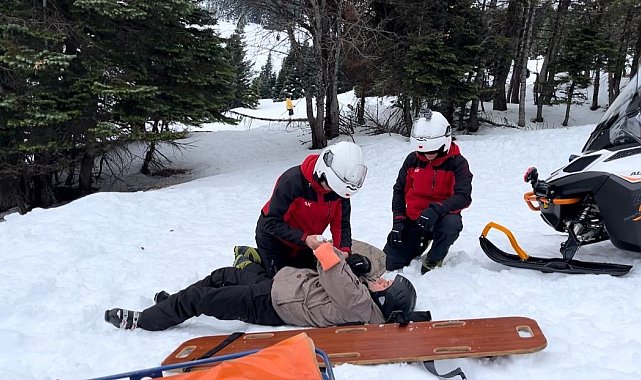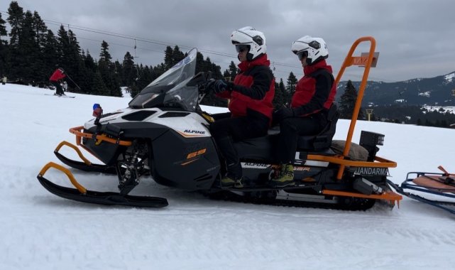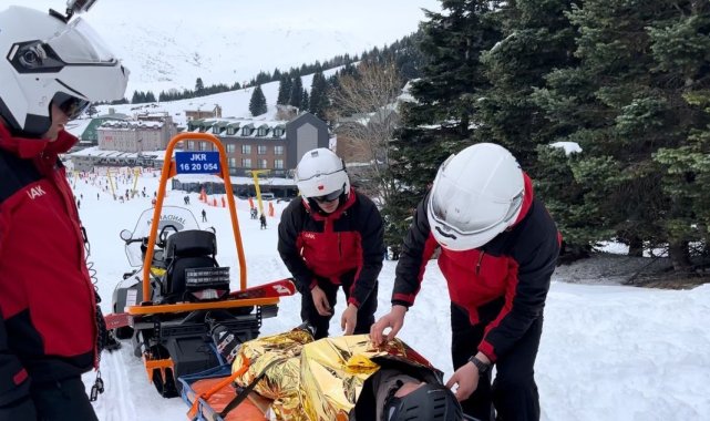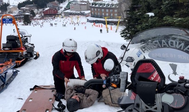 Türkiye'nin en büyük kış turizm merkezlerinden biri olan Uludağ'da Jandarma Arama Kurtarma ekipleri sömestir tatili boyunca 400 olaya müdahale etti. 7/24 teyakkuzda olan ekipler, sabahın ilk ışıklarıyla birlikte hazırlıklarını yaparken, meydana gelen yaralanma vakasına da anında müdahale etti. O anlar kameraya anbean yansıdı.Uludağ'da yarıyıl tatilinin son haftasında oteller bölgesinde yoğunluk devam ediyor. Bursa İl Jandarma Komutanlığına bağlı arama kurtarma ekiplerinin (JAK) yoğun mesaisi ise 7/24 sürüyor. Sömestir süresince 400 olaya müdahale eden ekipler, zamana karşı yarışarak, hayat kurtaran ilk müdahaleleri sağlıyor. Hazırlık esnasında 112'ye gelen ihbarla harekete geçen ekipler, kayak yapan bir vatandaşın mahsur kalması üzerine hızla bölgeye intikal etti. Kolunda kırık oluşan ve düştüğü yerde mahsur kalan bir vatandaşın yardımına kar motorlarıyla yetişen ekipler, ilk müdahale sonrası yaralıyı sağlık ekiplerine sevk etti.O anlar kameraya yansırken, jandarma ekiplerinin hızlı müdahalesi vatandaşlardan da tam puan aldı.