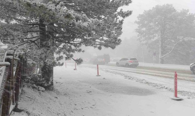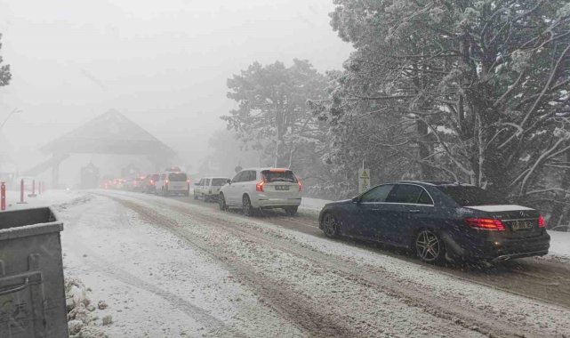 Uludağ'da yoğun kar ve tipi...Zincirsiz araç girişi yasaklandı