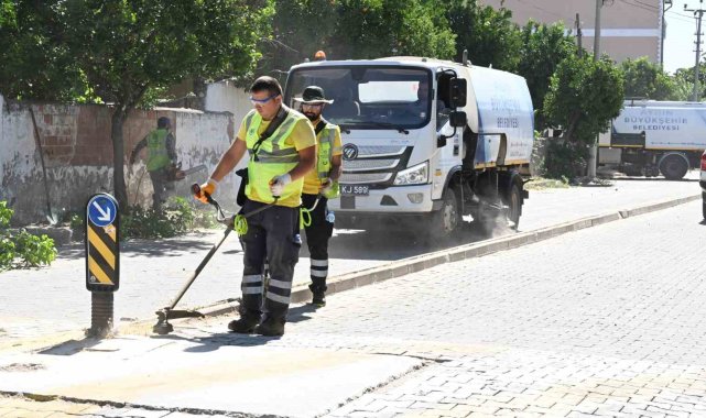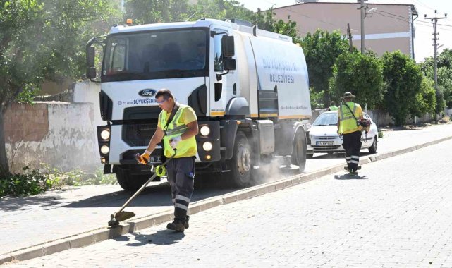 Aydın Büyükşehir Belediyesi'ne bağlı temizlik ekipleri, Aydın kent genelinde çalışmalarını sürdürüyor.Ekipler Efeler ilçesi, Umurlu Mahallesi'nde Büyükşehir Belediyesi'nin sorumluluk alanlarında temizlik çalışmalarını gerçekleştirdi. Park ve Bahçeler, Çevre Koruma ve Kontrol ile Ulaşım Dairesi Başkanlıklarına bağlı ekipler rutin temizlik çalışmalarının sürdürmelerinin yanı sıra budama faaliyetlerini gerçekleştirerek Umurlu'yu temiz bir görünüme kavuşturdu.Kent estetiği ve hijyenine önem gösterdiklerini ifade eden Aydın Büyükşehir Belediye Başkanı Özlem Çerçioğlu, "Aydın'ı pırıl pırıl tutmak için tüm ilçelerimizde eş zamanlı olarak çalışmalarımız devam ediyor. Kentimizde sorumluluk alanlarımızda bulunan tüm noktalarda gece-gündüz demeden temizlik çalışmalarımızı titizlikle sürdürüyoruz" dedi.Vatandaşlar, temizlik çalışmalarından memnuniyet duyduklarını belirterek Çerçioğlu'na teşekkür etti.