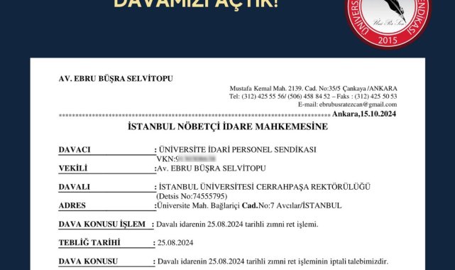 ÜNİ-PER-SEN'den İstanbul Üniversitesi Cerrahpaşa'da hukuki mücadele