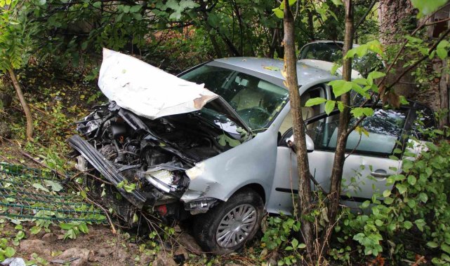 Üniversite öğrencilerinin bulunduğu otomobil bahçeye uçtu: 4 yaralı