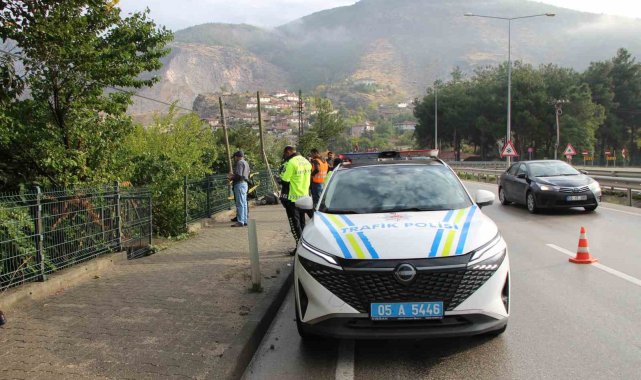 Amasya'da sürücüsünün direksiyon hâkimiyetini kaybettiği otomobil, bariyerlere çarpıp yoldan yaklaşık 5 metre aşağıdaki bahçeye uçtu. Kazada 4 üniversite öğrencisi yaralandı.