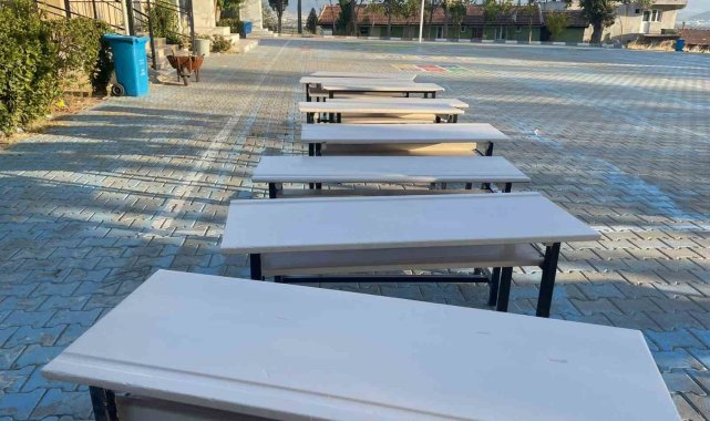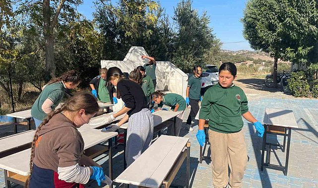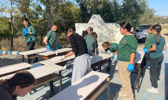 Manisa'da bir köy okulunun masalarını zımparalayarak boyayan üniversite öğrencileri, katkıda bulundukları okul idaresinin ve öğrencileri mutlu etti. Çalışmaya ortaokul öğrencileri de destek verdi.