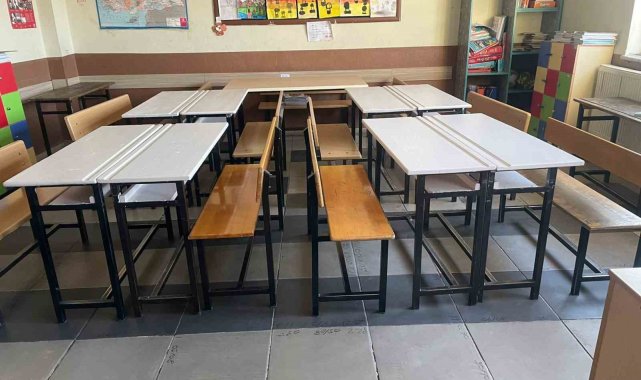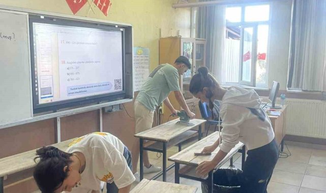 Üniversiteli öğrenciler köy okulunun masalarını yeniledi