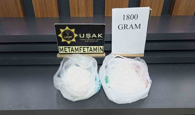 Uşak'ta yapılan operasyonlarda 1 kilo 802 gram metamfetamin, 211 adet kullanımlık A4 sentetik bonzai, bir miktar esrar ve 1 adet hassas terazi ele geçirildi.