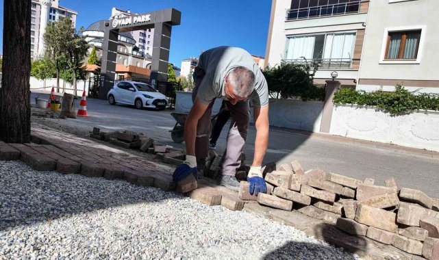 Uşak Belediyesi ekipleri hasar gören ve bozulan kaldırımları tamir ediyor.