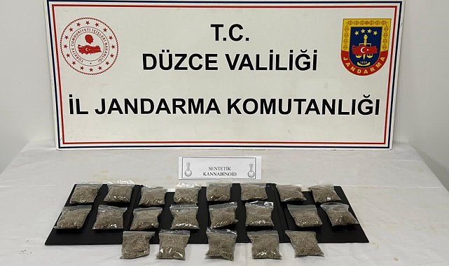Düzce İl Jandarma Komutanlığı ekipleri, il dışından getirdiği uyuşturucuları satmak için hazırlayan bir kişiyi yakaladı. Şahsın evinden 50'şer gram halinde paketlenmiş 1 kilo 50 gram uyuşturucu madde çıktı.Düzce Cumhuriyet Başsavcılığı koordinesinde İl Jandadma Komutanlığı Narkotik Suçlarla Mücadele Şube Müdürlüğü ekiplerince yürütülen çalışmalarda merkez ilçede H.T isimli şahsın il dışından getirdiği uyuşturucu maddelerin ticaretini yaptığı tespit edildi. Jandarma ekiplerinin yaptığı baskında H.T isimli şahıs uyuşturucu maddeleri satışa hazırlarken yakalandı. Şahsın evinde yapılan aramada 21 adet 50'şer gramlık paketler halinde, toplam 1 kilo 50 gram uyuşturucu madde emdirilmiş sentetik kannabinoid ele geçirildi. H.T isimii şahıs göz altına alınırken hakkında adli işlem başlatıldı.