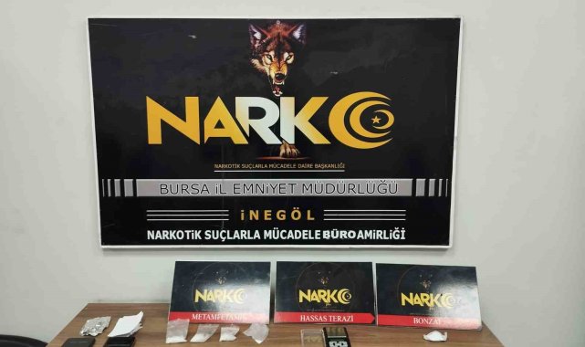Bursa'nın İnegöl ilçesinde Narkotik Büro Amirliği ekipleri uyuşturucu taciri iki şahsı suçüstü yakaladı.Bursa İl Emniyet Müdürlüğü Narkotik Şube Müdürlüğü İnegöl Büro Amirliği ekipleri uyuşturucu satıldığı bilgisine ulaştı. Ekipler 2 şüpheliyi takibe aldılar. Ekipleri gören şüpheliler kaçmaya başladı. Kovalamaca sonucu önü kesilen araç durduruldu. Araçta yapılan aramada 21 gram Metanfetamin ve 2 gram bonzai ile hassas terazi ele geçirildi. Şüpheliler A.D ve M.E., sorgulamanın ardından adliyeye sevk edildikleri mahkemece tutuklanarak cezaevine gönderildi.