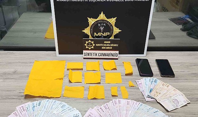 Mersin'in Anamur ilçesinde uyuşturucu maddeyi emdirdiği kâğıtlarla sattığı iddia edilen şüpheli yakalanarak tutuklandı.Alınan bilgiye göre, Anamur Cumhuriyet Başsavcılığı koordinesinde İlçe Emniyet Müdürlüğü Narkotik Suçlarla Mücadele Büro Amirliği ekipleri uyuşturucu ile mücadele kapsamında çalışma yaptı. Yapılan çalışmada şüpheliler H.Ç.Ç. ve A.O. belirlenerek yakalandı. Şüphelilerin üzerinde yapılan aramada sentetik uyuşturucu emdirilen kâğıt parçaları ele geçirildi. 2 şüpheli hakkında uyuşturucu madde kullanmaktan işlem yapılırken polis çalışmasını sürdürdü. Çalışmada şüphelilerin uyuşturucu maddeyi Serhat Ş.'den aldığı belirlenerek adresine operasyon yapıldı. Operasyonda Serhat Ş. ve S.Ş. yakalanarak gözaltına alındı. Şüphelilerin adreslerinde yapılan aramada farklı ebatlarda 13 parça sentetik kannabinoid emdirilmiş turuncu renkli kâğıt, uyuşturucu ticaretinden elde edildiği değerlendirilen 19 bin 815 TL ele geçirildi.2 şüpheli uyuşturucu madde ticareti yapmak suçundan adliyeye sevk edildi. Şüphelilerden Serhat Ş. tutuklandı. Diğer şüpheli ise adli kontrol şartı ile serbest kaldı.