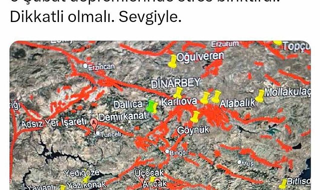 Diyarbakır'ın Hani ilçesinde meydana gelen 4.0 büyüklüğündeki depremin ardından Prof. Dr. Naci Görür, "Bu fay zonu 6 Şubat depremlerinde stres biriktirdi" uyarısında bulundu.Diyarbakır'da saat 14.49'da merkez üssü Hani ilçesi olan 4.0 büyüklüğünde deprem meydana geldi. Depremin, Dicle-Lice Segmenti üzerinde yer alan Bitlis-Zagros bindirme zonu üzerinde gerçekleştiği bildirildi. Deprem bilimci Prof. Dr. Naci Görür, sosyal medya hesabından yaptığı açıklamada, bu fay zonunun 6 Şubat 2023 Kahramanmaraş depremleri sonrasında stres biriktirdiğini belirterek, "Bu fay zonu 6 Şubat depremlerinde stres biriktirdi. Dikkatli olmalı" ifadelerini kullandı.