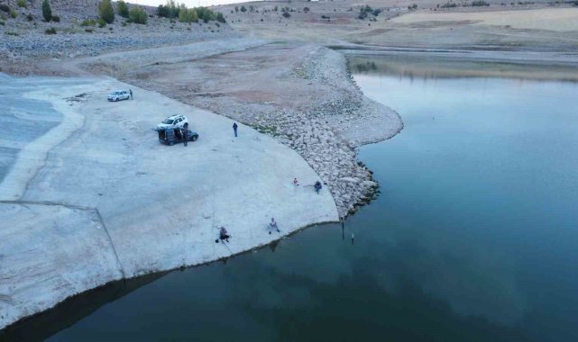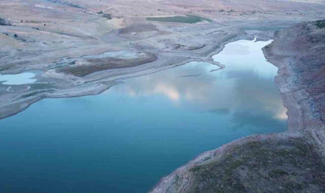 Uzunlu Barajı'nda su seviyesindeki değişim dronla görüntülendi