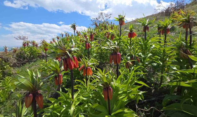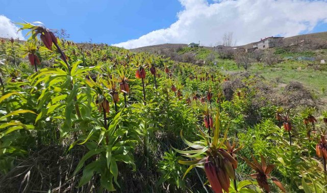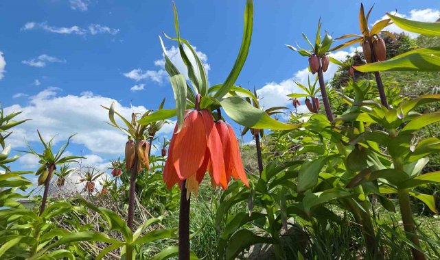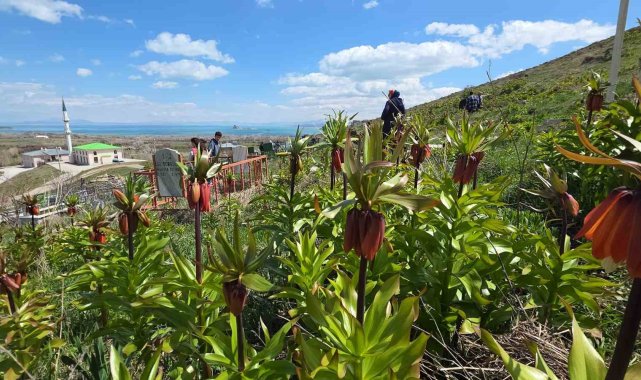 Van'ın Gevaş ilçesindeki yetişen ve halk arasında "ağlayan gelin" veya "hüzün çiçeği" diye bilinen ters laleler güzellikleriyle doğayı renklendiriyor.