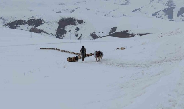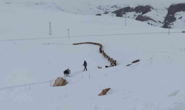 Van'da besicilerin 4 ay süren zorlu kış mesaisi devam ediyor.Kış mevsiminin zor ve çetin geçtiği Van'da, küçükbaş hayvan yetiştiriciliği yapan besiciler yoğun mesai harcıyor. Gevaş ilçesindeki besiciler, çetin kış şartları ve bölgenin zorlu coğrafyasına rağmen hayvanlarının bakımını ihmal etmiyor. Besiciler, evlerinin uzağında yemledikleri hayvanlarını akşam saatlerinde tekrar ağıla götürüyor. Kimi besici de hayvanlarını karlı araziye çıkartıyor. Yollarda ekiplerin kar yağışı için döktüğü tuzları yiyen koyunlar ise zaman zaman tuz ihtiyacını bu şekilde gideriyor.