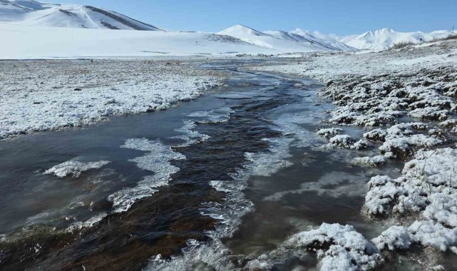 Van'da etkili olan yoğun kar yağışının ardından hava sıcaklıklarının sıfırın altına düşmesiyle birlikte dereler ve küçük akarsular dondu.