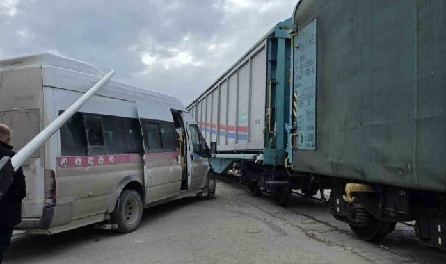Van'ın Tuşba ilçesinde hemzemin geçitte tren ile okul servisi çarpıştı. Faciadan dönülen kaza maddi hasarla atlatıldı.