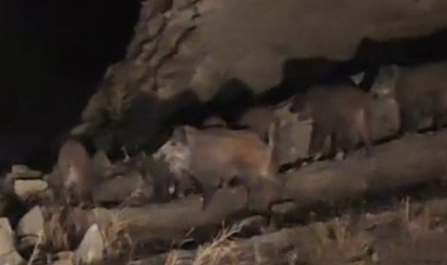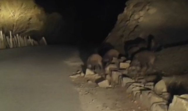 Van'ın Başkale ilçesinde mahallaye inerek yiyecek arayan domuz sürüsü görüntülendi.Başkale ilçesine 50 kilometre uzaklıkta bulunan İran sınırındaki kırsal Esenyamaç Mahallesi'ne akşam saatlerinde yaban domuzu sürüsü indi. Mahallede ikamet eden Mustafa Özdemir, yolun kenarında yiyecek arayan sürüyü cep telefonu kamerasıyla görüntüledi. Yaklaşık 10 domuzun bulunduğu sürü, yolun karşısına geçtikten sonra gözden kayboldu.