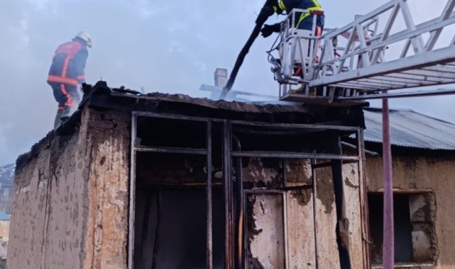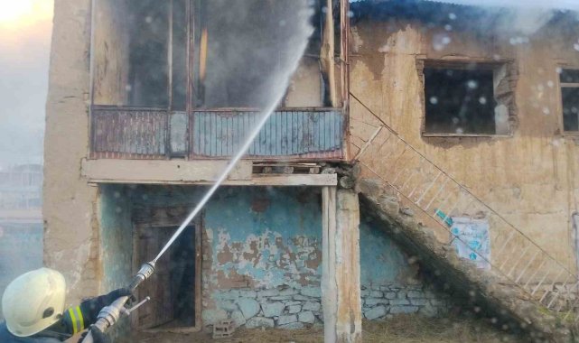 Van'da metruk binada yangın