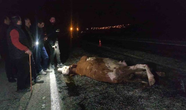 Van'ın Gevaş ilçesinde bir minibüs ile otomobil, aniden yola çıkan ineğe çarptı. Kazada 2 kişi yaralanırken, inek telef oldu.