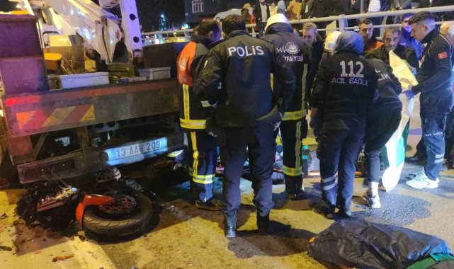 Van'da yol aydınlatma direklerinde bakım çalışması yapan sepetli vince, motosikletin arkadan çarpmasıyla meydana gelen trafik kazasında 1 kişi hayatını kaybetti, 2 kişi de yaralandı.