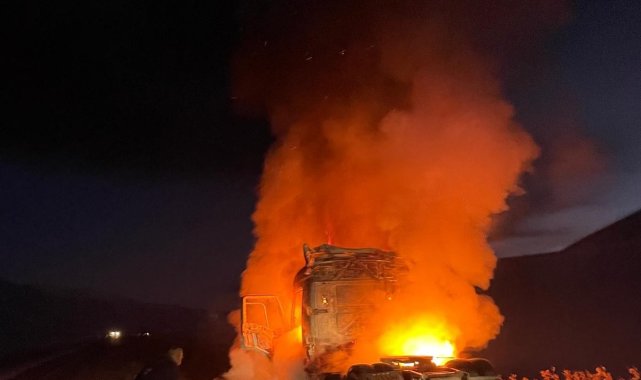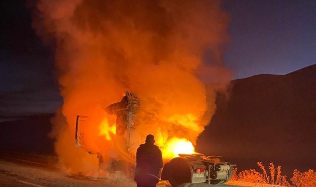 Van'ın Çaldıran ilçesinde seyir halindeki tır alev alev yandı.