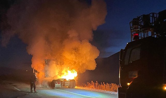 Van'ın Çaldıran ilçesinde seyir halindeki tır alev alev yandı.Edinilen bilgiye göre, akşam saatlerinde Tekindere Mahallesi'nde seyreden N.E. yönetimindeki 65 AAR 418 plakalı tır aniden yanmaya başladı. Tırın motor kısmından dumanların yükseldiğini gören şoför N.E., aracı yolun kenarına çekerek, itfaiye ekiplerine haber verdi. Olay yerine Çaldıran İtfaiye Grup Amirliği ekipleri sevk edildi. Yaklaşık 20 dakikalık müdahalenin ardından yangın söndürülürken, tırdan geriye hurda yığını kaldı.