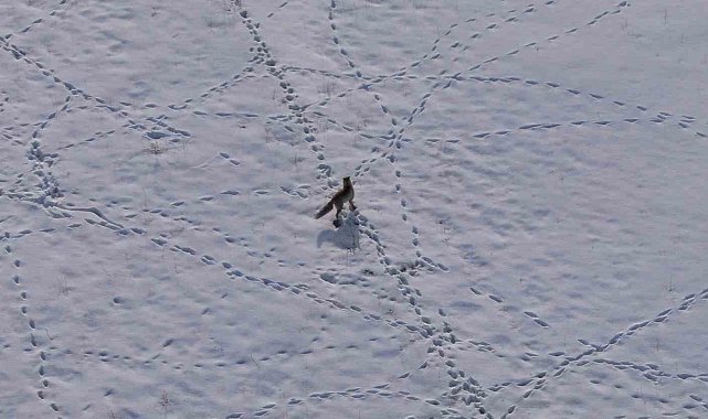 Van'da tilkilerin karla kaplı arazide fare avı kamerada