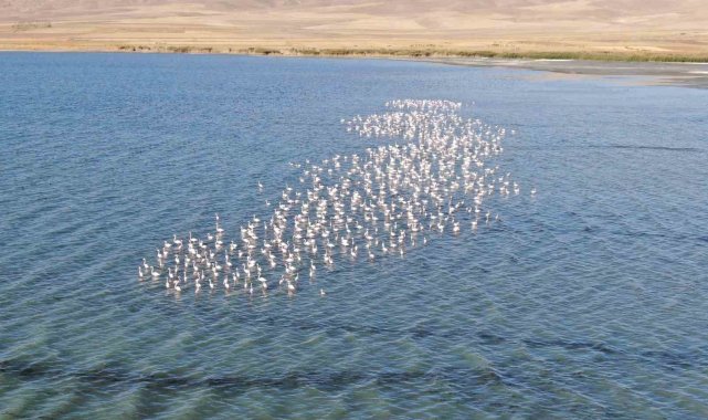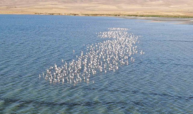 Van Gölü havzası flamingolarla renkleniyor