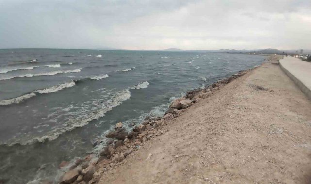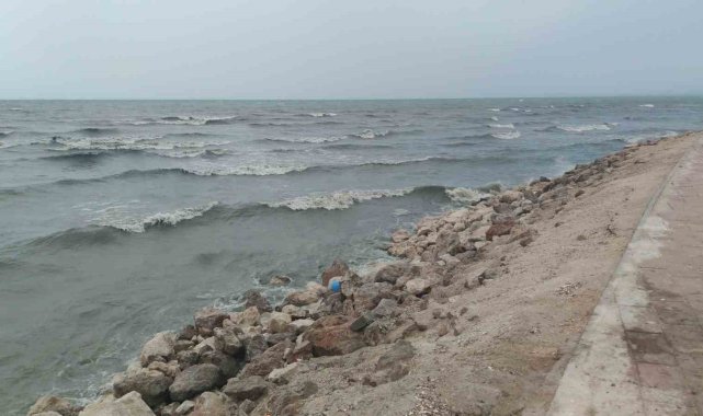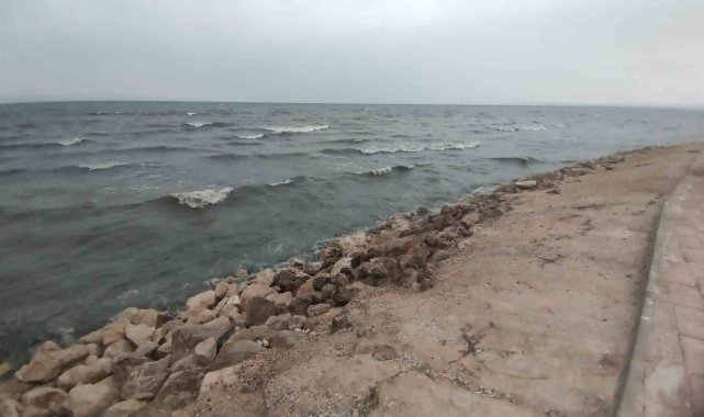 Van Gölü rüzgarla coştu: Dalgalar sahili dövdü