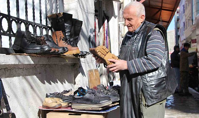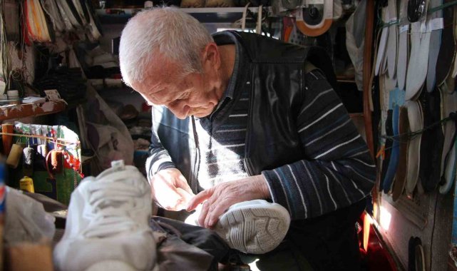 Van'da 54 yıldır ayakkabı tamirciliği yapan 71 yaşındaki Muhittin Deniz, çöpte bulduğu eski ayakkabıları tamir ederek ihtiyaç sahiplerine ulaştırıyor.