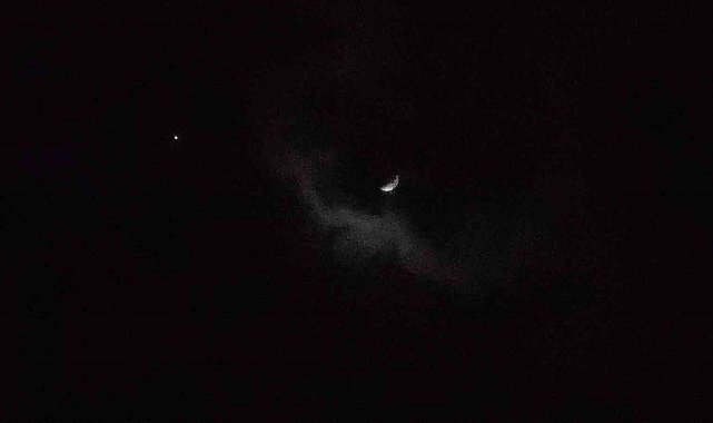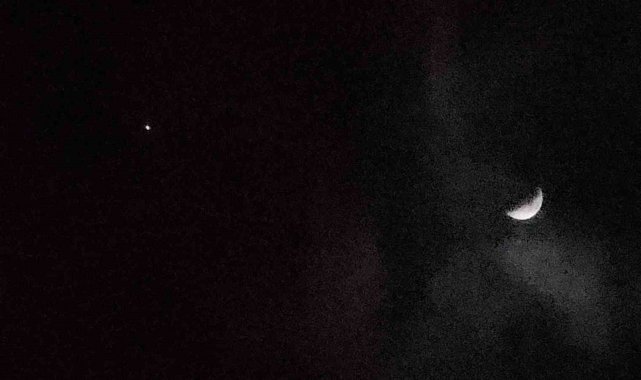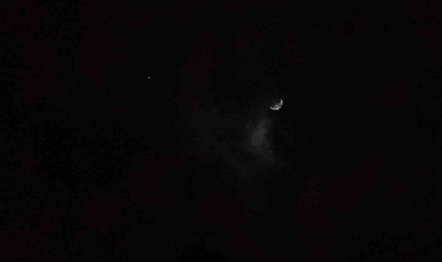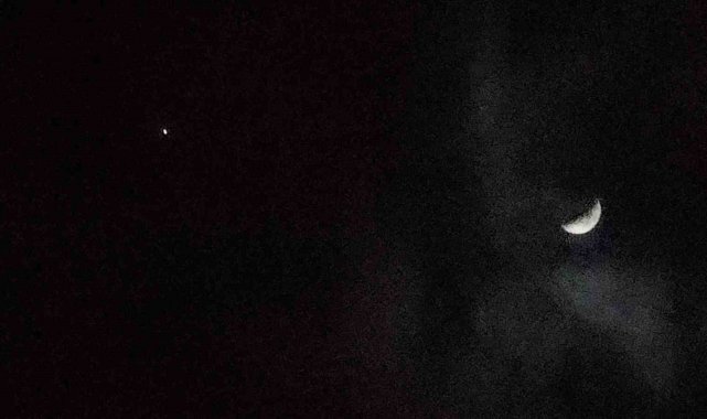 Van'da bulutlu gökyüzü, nadir görülen bir buluşmaya ev sahipliği yaptı. Ay'ın hilal hali ve hemen yanı başında parlayan Jüpiter, karanlığı bir tablo gibi süsledi.