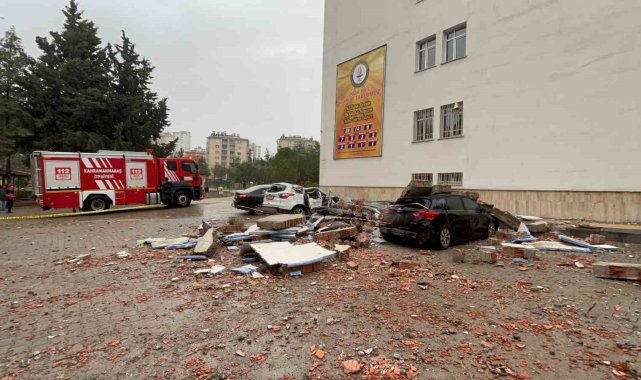 Kahramanmaraş'ta etkili olan kuvvetli fırtına ve yağış sırasında okula veli toplantısı için gelen vatandaşların otomobillerinin üzerine okulun duvarı devrildi. Yaşanan olayda 3 kişi yaralandı.