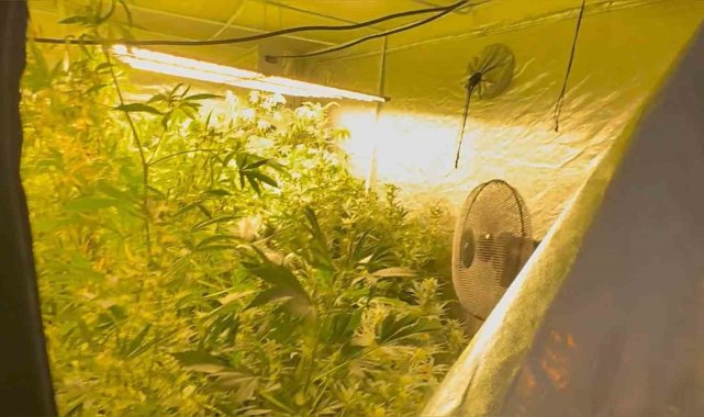 Villanın odalarını uyuşturucu tarlasına dönüştürmüş