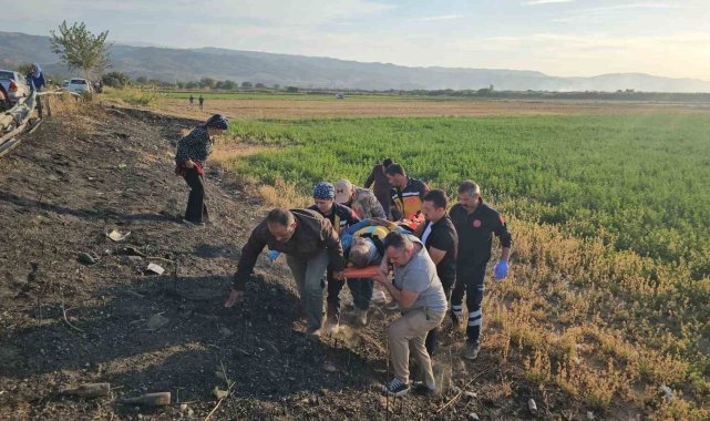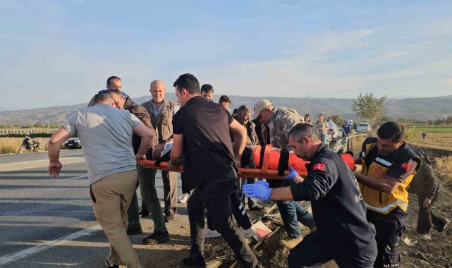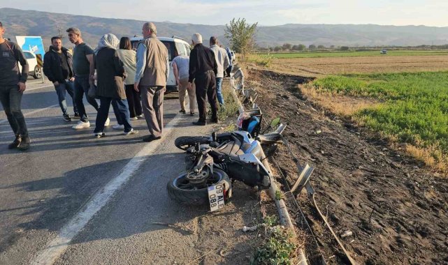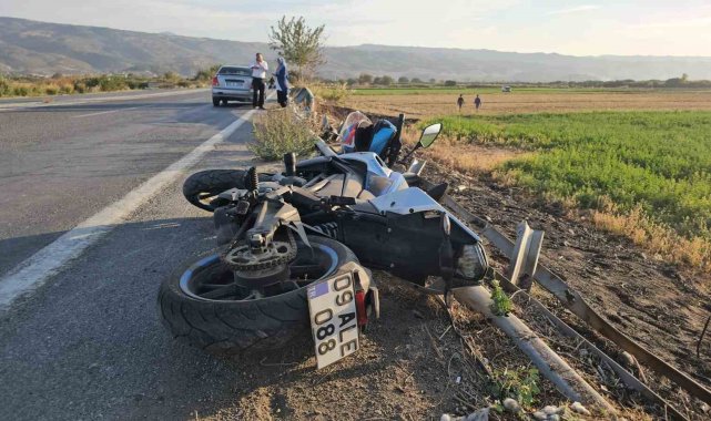 Aydın'ın Yenipazar ilçesinde viraja hızlı giren motosiklet ve otomobil, bariyerlere çarptı. Ardı ardına meydana gelen kazada yol kenarındaki tarlaya savrulan motosiklet sürücüsü yaralandı.