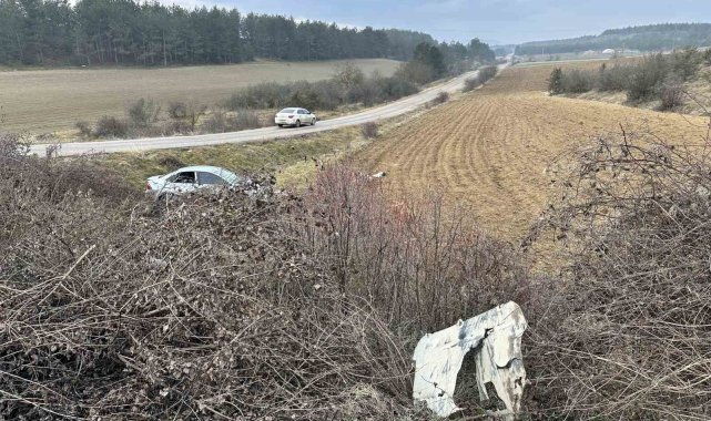 Virajı alamayan otomobil tarlaya uçtu: 3 yaralı