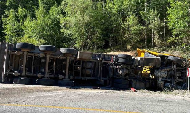 Kastamonu'nun Tosya ilçesinde virajı alamayan talaş yüklü tırın devrildiği kazada 2 kişi yaralandı.