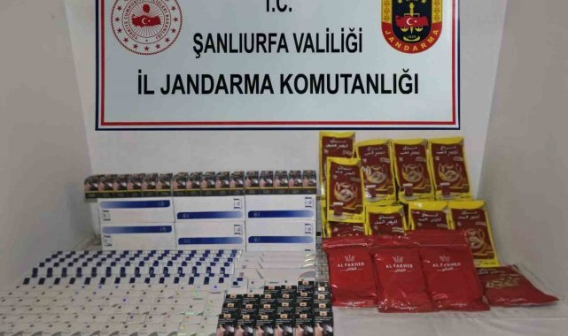 Şanlıurfa'nın Viranşehir ilçesinde jandarma ekipleri tarafından gerçekleştirilen çalışmalarda 2 bin 865 paket gümrük kaçağı sigara, 20 kilogram çay ve 6 kilogram nargile tütünü ele geçirildi.