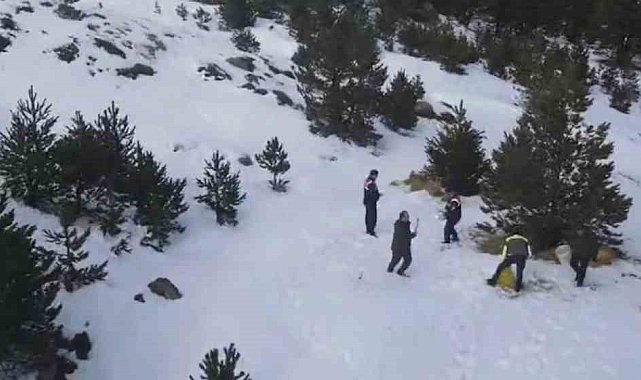 Tarım ve Orman Bakanlığı Doğa Koruma ve Milli Parklar Genel Müdürlüğü 2. Bölge Müdürlüğüne bağlı ekipler, yoğun kar yağışı ve zor kış şartlarında yem bulmakta güçlük çeken yaban hayvanları için Balıkesir'in dağlık kesimlerine yiyecek bıraktı.