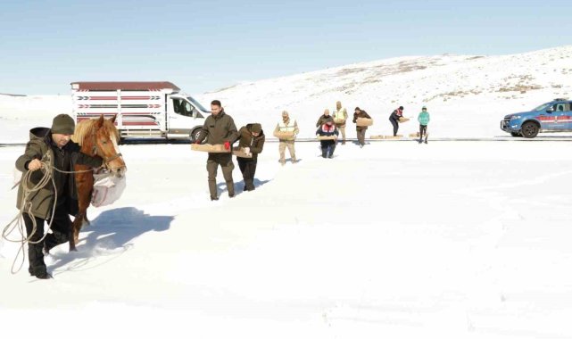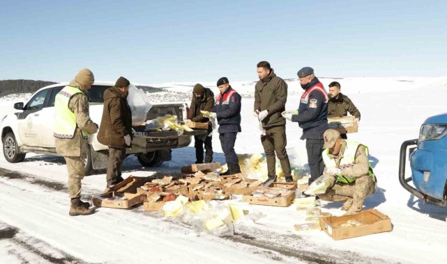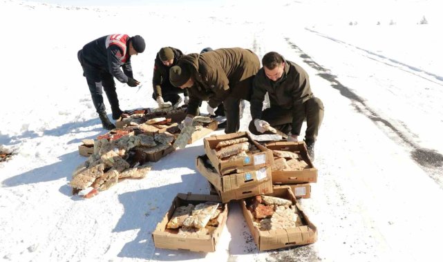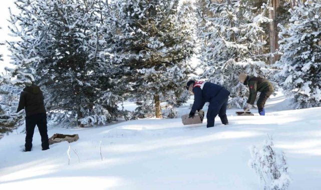 Çetin kış koşullarının hüküm sürdüğü Ardahan'da, yem bulmakta zorlanan yabani hayvanlar için yemleme çalışması yapıldı.