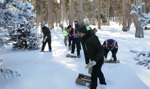 Yabani hayvanlar için doğaya yem bıraktılar